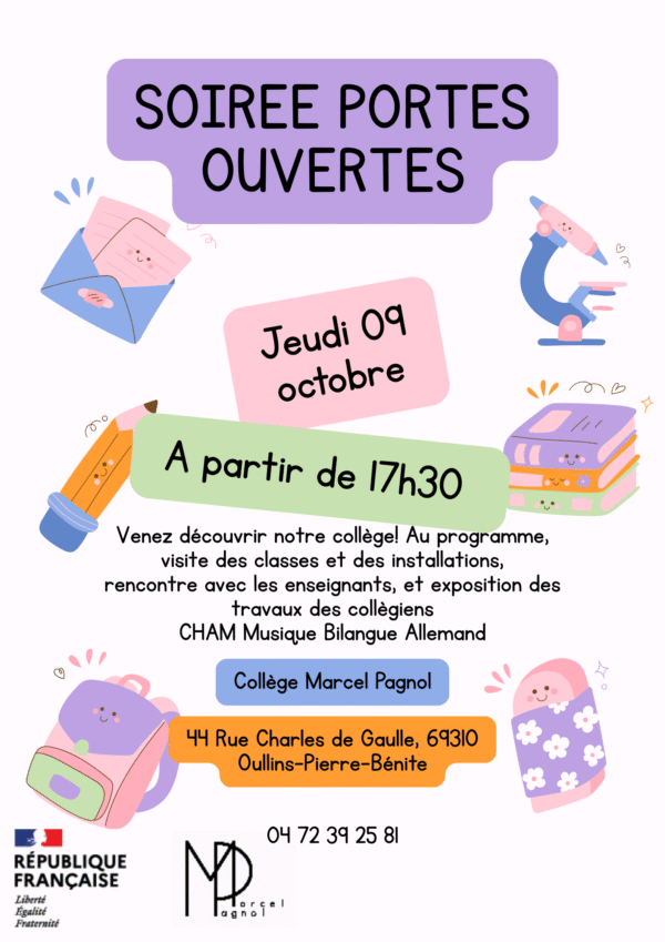 Chers Parents des écoles élémentaires et maternelles d’Oullins-Pierre-Bénite, Vous êtes toutes et tous invités à participer à la soirée du Collège Marcel Pagnol qui se déroulera le jeudi 09/10 à 17h30 Vous pourrez y découvrir les activités d’élèves notamment des… Continue Reading →